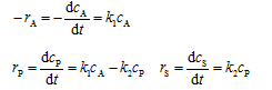 由于总摩尔数没有变化,所以 cA0=cA+cP+cS