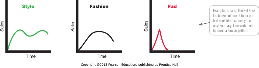 The PLC can be applied to styles, fashions, and fads (Figure 8.3).