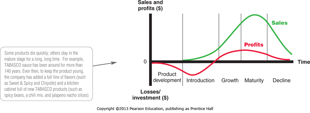 Figure below shows a typical product life cycle (PLC), the course that a product’s sales and profits take over its lifetime.