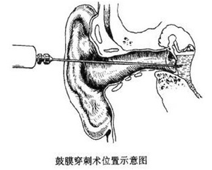 (1)鼓膜穿刺:选用针尖斜面短的长针头,经鼓膜前下或后下方穿刺抽出积液,可注入糖皮质激素或α-糜蛋白酶。