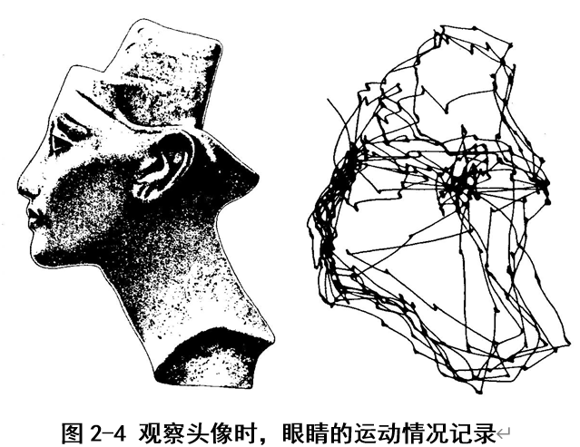 人在观察某一物体时,其顺序也表现出一定的规律性。由于人眼只有网膜中央才能得到详细的信息,因此,为了得到观察对象的详细资料,眼球必须时刻转动,其中急速转动的时间占总体的10%。