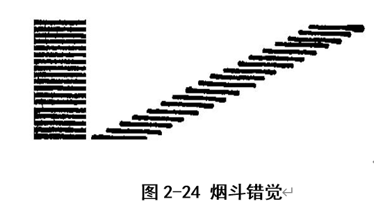 图2-23所示是著名的烟斗错觉。图中两组短横线实际上是相等的,且两边面积亦相等,但给人的感觉是左面一组短横线似乎比右面一组的横线要长些。