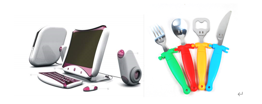 3、系统结构: 所谓系统结构是指产品与产品之间的关系结构。外部结构与核心结构分别是一个产品整体的两个要素,而系统结构是将若干个产品所构成的关系看作一个整体,将其中具有独立功能的产品看作是要素。系统结构设计就是物与物的“关系”设计。常见的结构关系有: 分体结构——相对于整体结构,即同一目的不同功能的产品关系分离。如:电脑分别由主机、显示器、键盘、鼠标及外围设备组成完整系统。 系列结构——由若干产品构成成套系列、组合系列、家族系列、单元系列等系列化产品,产品与产品之间是相互依存、相互作用的关系。 网络结构——由若干具有独立功能的产品相互进行有形或无形的连接,构成具有符合功能的网络系统。如:电脑与电脑之间的相互联网,电脑服务器与若干终端的连接以及无线传呼系统等,信息高速公路是最为庞大的网络结构。