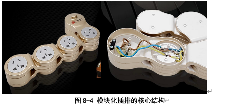 图8-4分体结构 4、空间结构: 所谓空间结构是指产品在空间上的构成关系,也是产品与周围环境的相互联系、相互作用的关系。相对于产品实体,空间是“虚无“的存在。