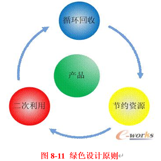 三、绿色设计的特征: 1.环境亲和性: 指产品开发与使用的整个过程中,对于人类生态环境与资源环境的有益性尺度。要想达到这样的亲和程度,设计从开始到终结必须具有绿色意识,设计人员应该考虑到:“制造过程中可能产生的废弃物是什么,有毒成份的可能替代物是什么,报废之后的产品将如何管理,结构设计对产品的回收性能有何影响等等。这些问题应与产品的性能,造型设计等问题共同考虑。 2.价值创新性: 传统的产品设计注重产品的直接使用价值,而绿色设计使产品的价值形态发生了新的变化,要求将产品价值与环境价值作为一个整体来考虑,体现了创新性。比如说:由法令规定如牙膏盒、化妆盒等这些起保护作用的包装盒必须经过资源回收或重复使用的过程。 3.功能全程性: 绿色设计要求设计人员在构思的开始阶段就要把降低能耗、易于拆卸、再生利用和保护生态环境作为它的设计目标之一。从构思到产品使用后的回收利用及处理处置,是一种全程性的功能目标。 四、绿色设计原则: 绿色设计的核心可概括为3R——Reduce、Reuse、Recycling,3R是绿色设计的三个主题词,也就是三个设计原则: