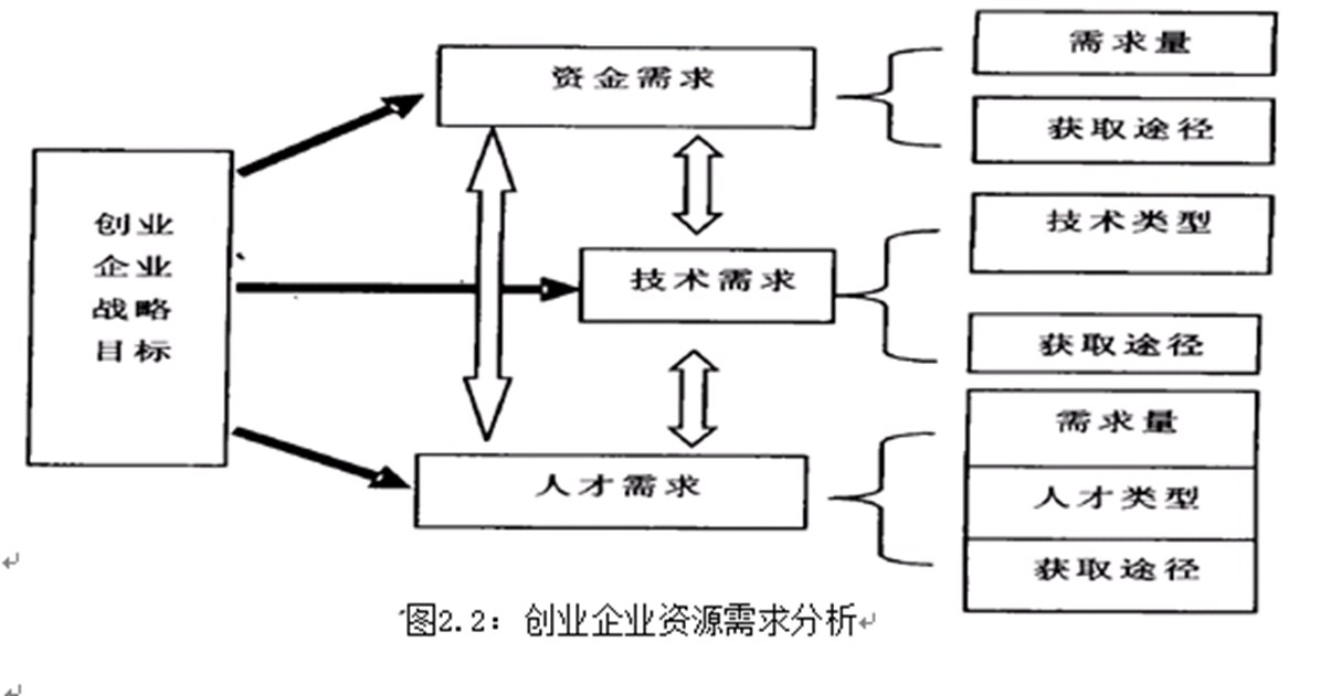 通过对企业资源需求分析及创业企业现有的资源,就可以确定创业企业需要从外部环境获取的资源。如图2.2,