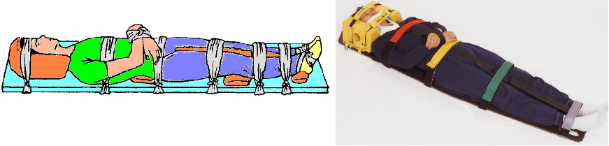 表面平坦的木板、床板,以大小超过伤员的肩宽和人体高度为宜,配有绷带及布带用于固定。