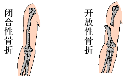 按照是否与外界相通可分为:1)闭合性骨折-骨折断端不与外界相通,骨折处的皮肤、黏膜完整。 2)开放性骨折- 骨折局部皮肤、黏膜破裂损伤,骨折端与外界相通,易发感染。