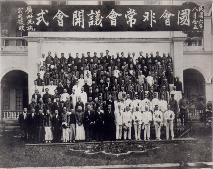 1917年8月25日,孙中山召集原国会部分议员在广州开会,提出“护法”,即维护中华民国临时约法。因到会人数不足,故称“非常国会”。会议决定在广州成立军政府,以孙为军政府大元帅,唐继尧、陆荣廷为元帅。孙以大元帅名义通电否认以冯国璋为总统、段祺瑞为国务总理的北京政府,号召北伐。