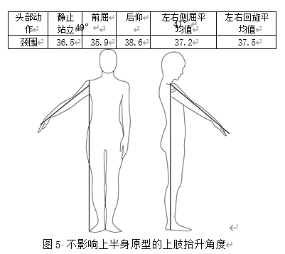 经过对青年女性作为研究对象,进行人体数据采集实验。分析其体型特征与原型构造的关系;通过研究对象在指定动作中的数据结果分析,对上半身原型所需的必要放松量,以及日常活动运动量的加放原则提供科学的处理建议和依据。