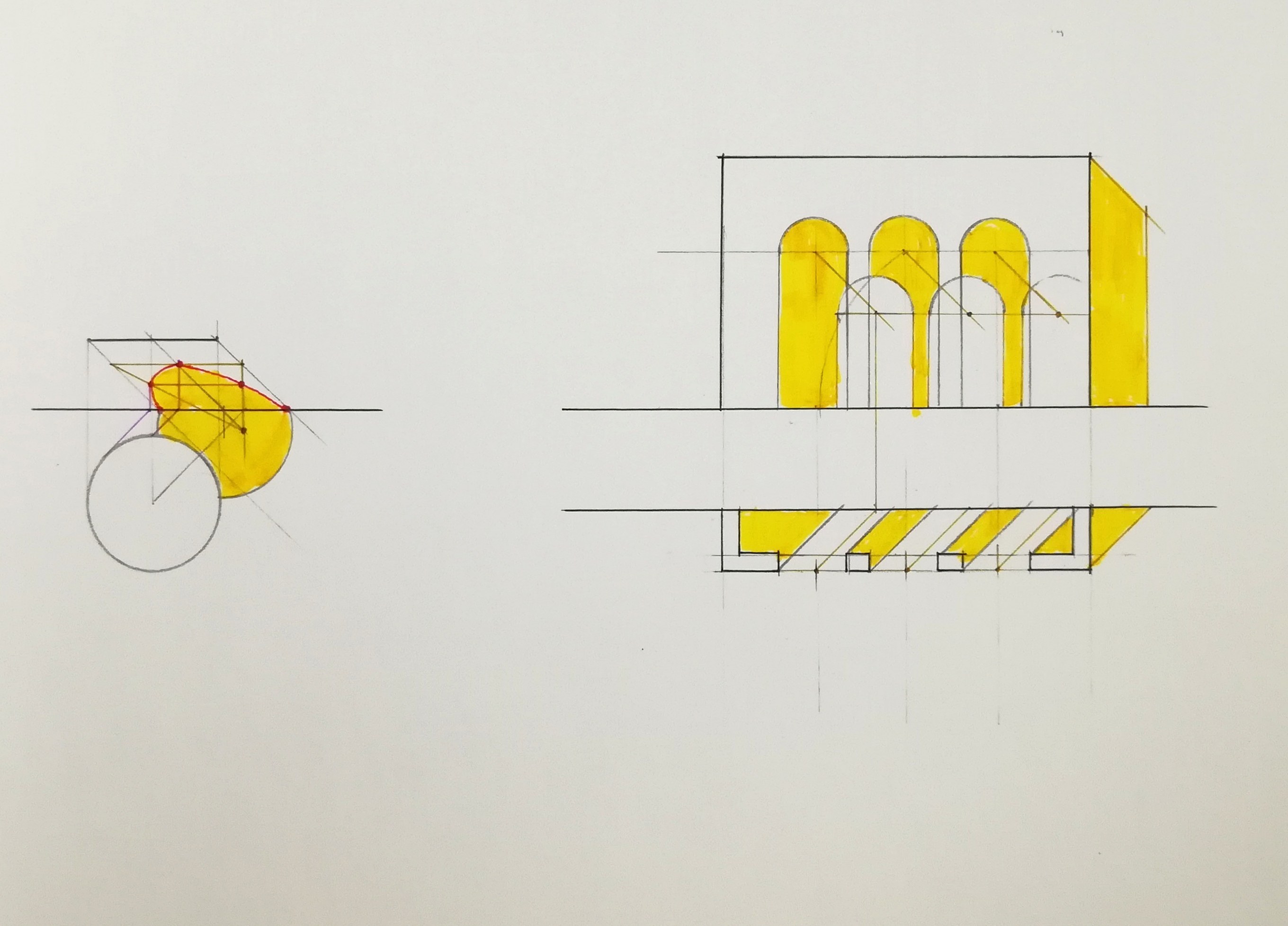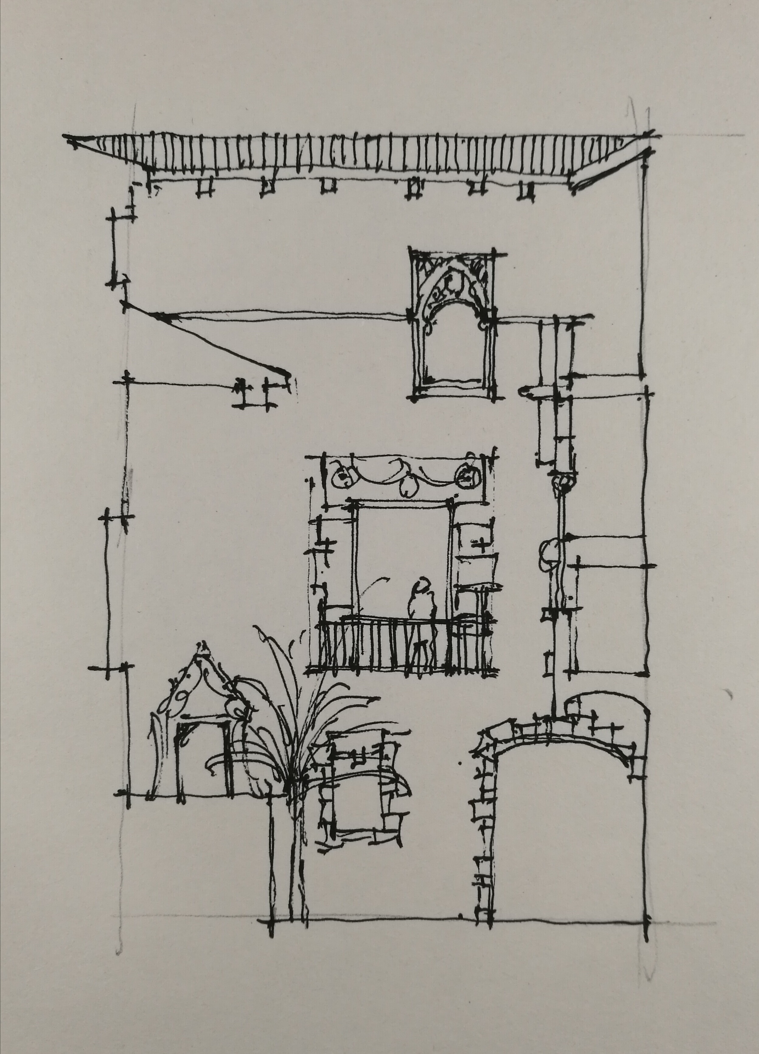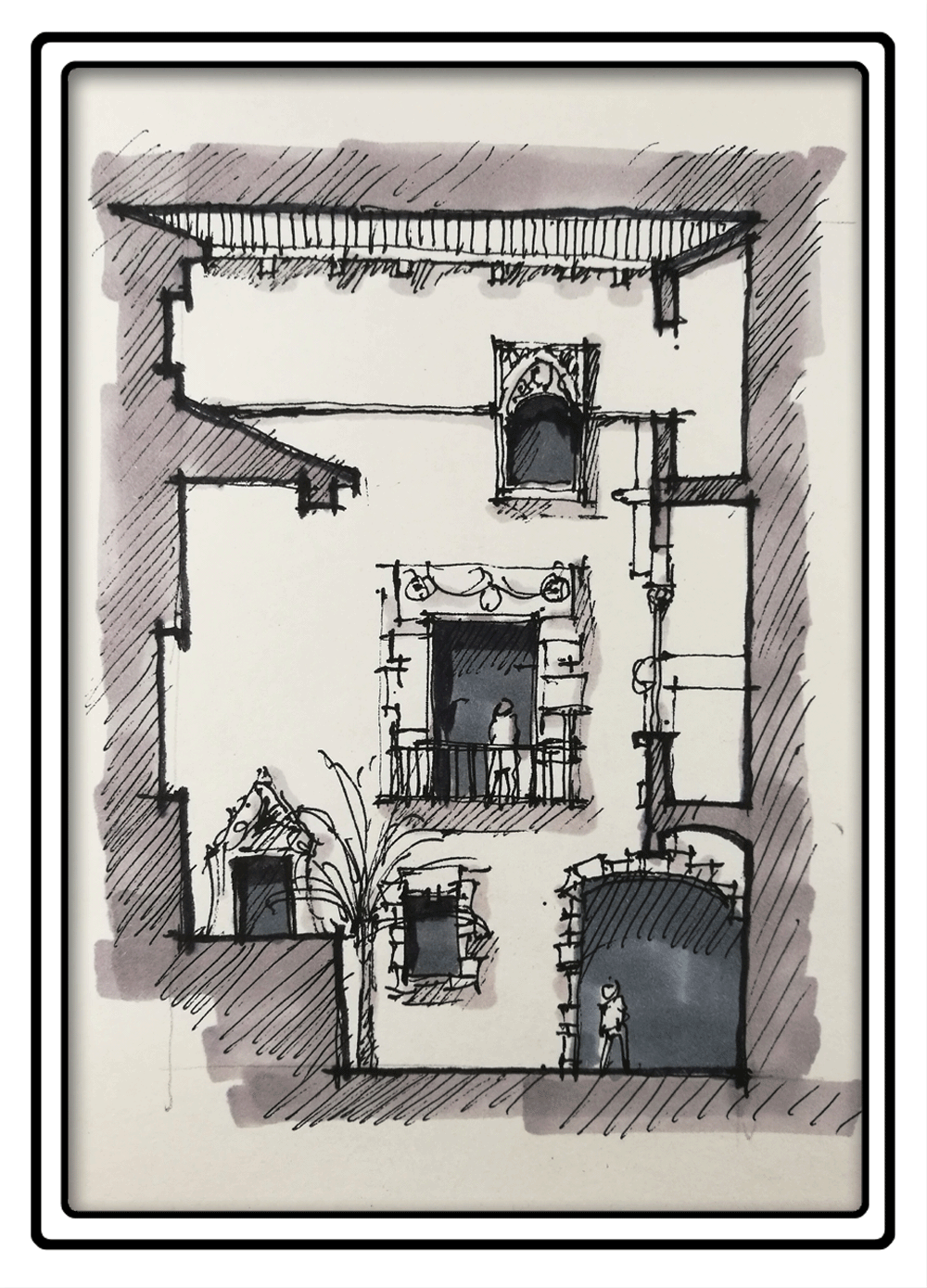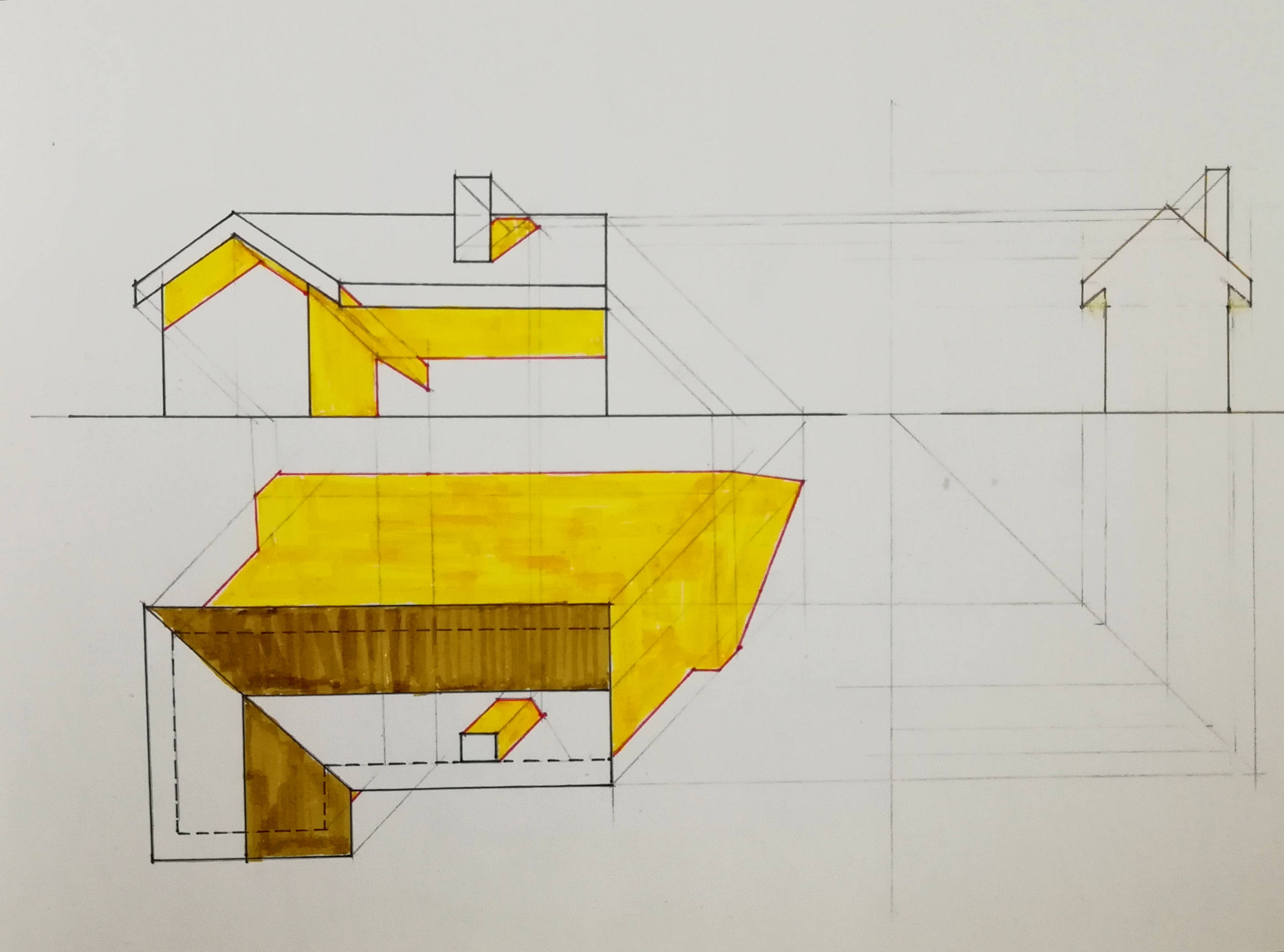 而在进行正投影图的绘制时,要培养从整体到局部的控制能力。不仅哲学中有范学的概念,设计实践中在空间处理方面也有一个类似的次关系。正投影图的内容设计应该与图纸的大小及比例尺的设定相統一。在快速念记录和概念表达阶段,平立剖图的比例尺度在精度上要求不会太高。但是,一旦到了设计深化以及重要的节点表达时,平立剖图的精度求会加强许多。
