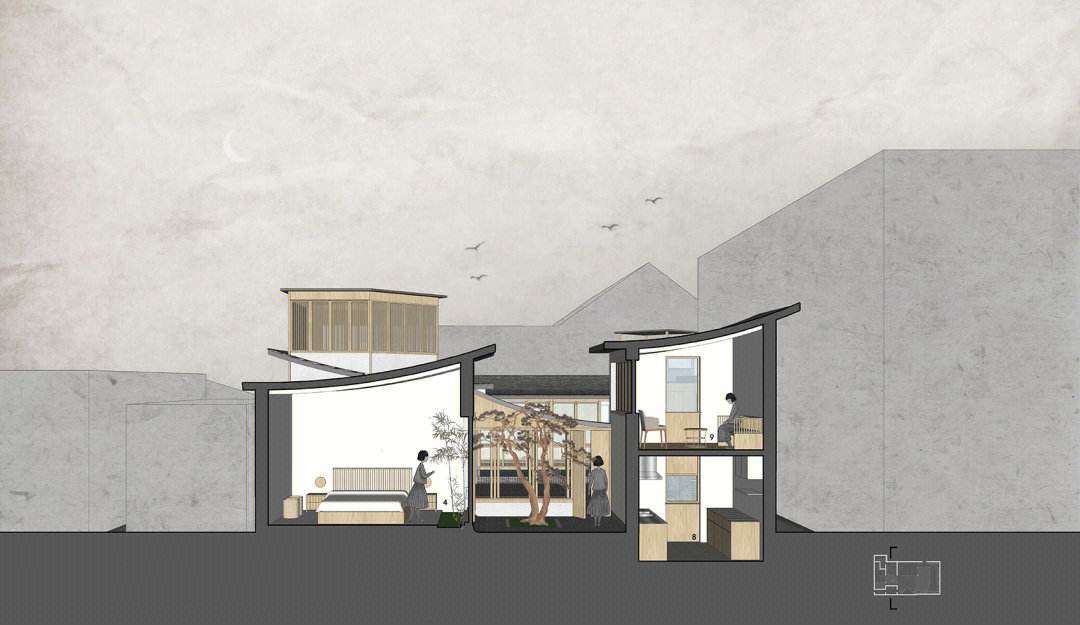从建筑其空内室间的親视角来看,不同空间的组合方式会产生不同的使用体验。而空间的大小疏密化与具体功合玉,也要在合理的关系中去阐释设计意图,空间大大小小主交织在一起,为使用提供了丰富的选择。