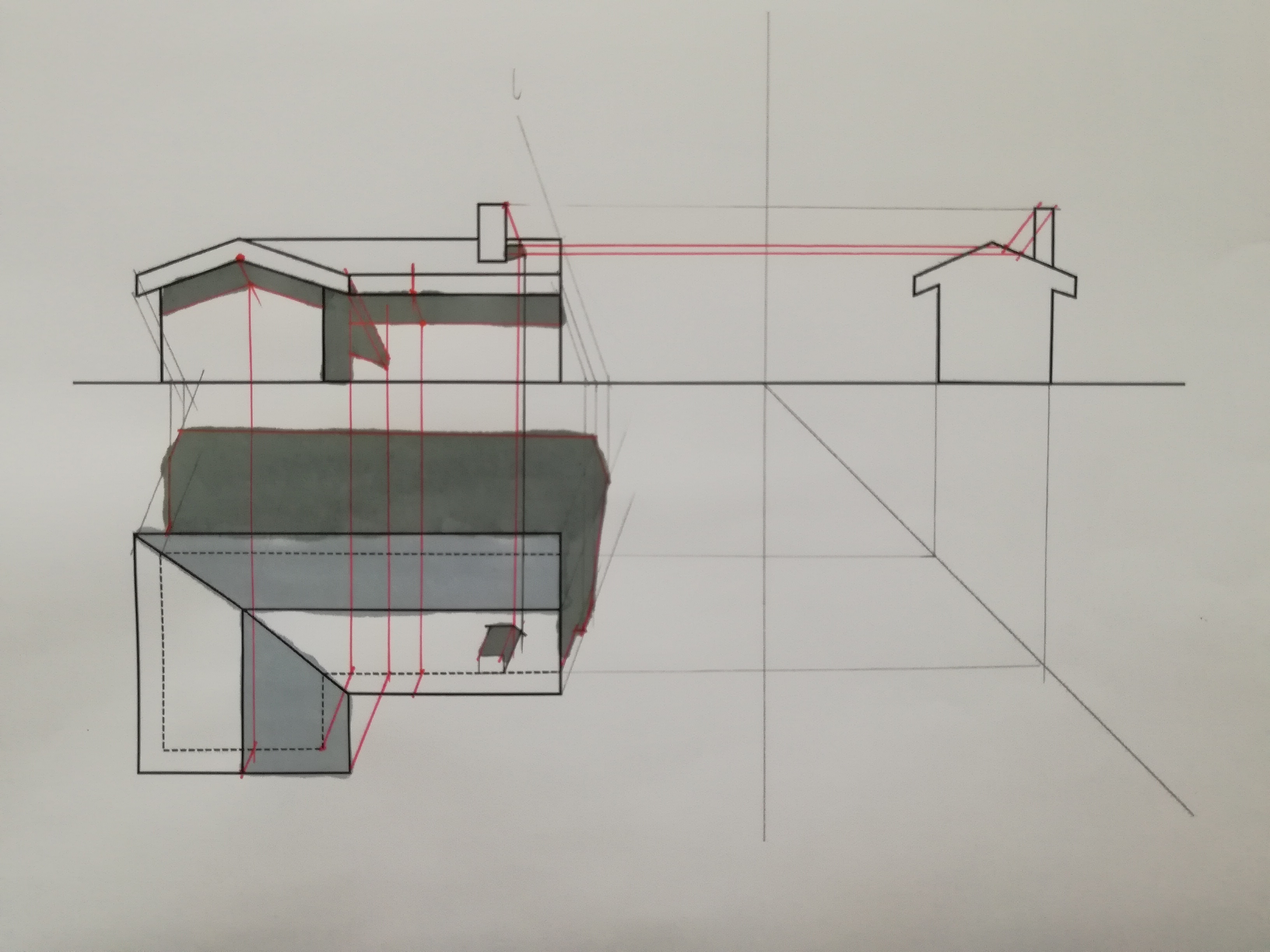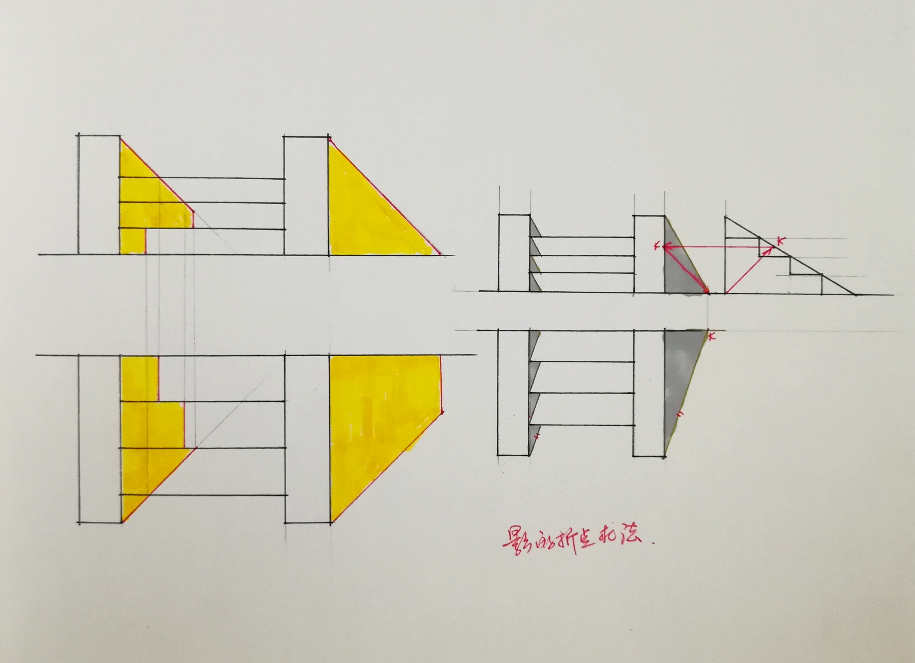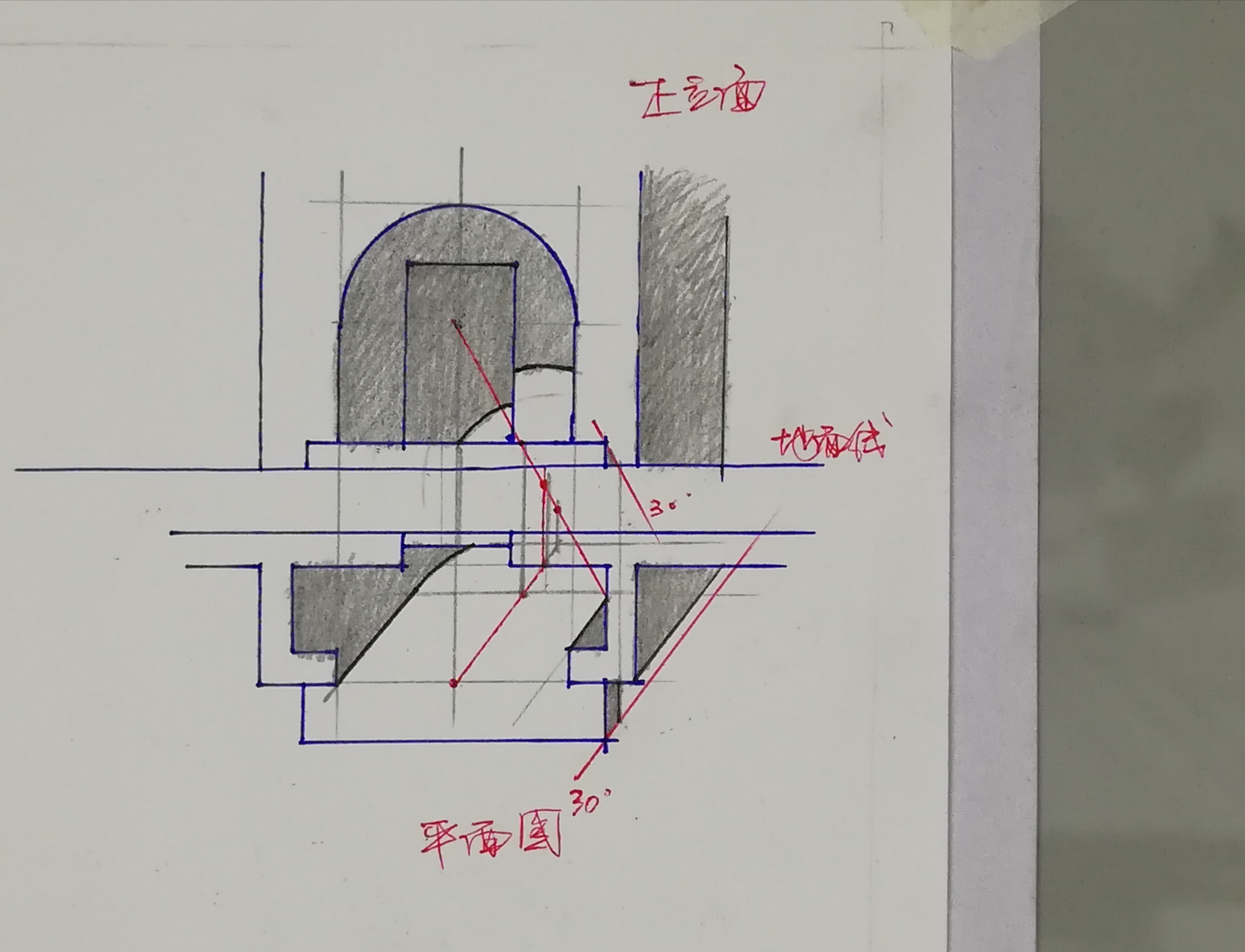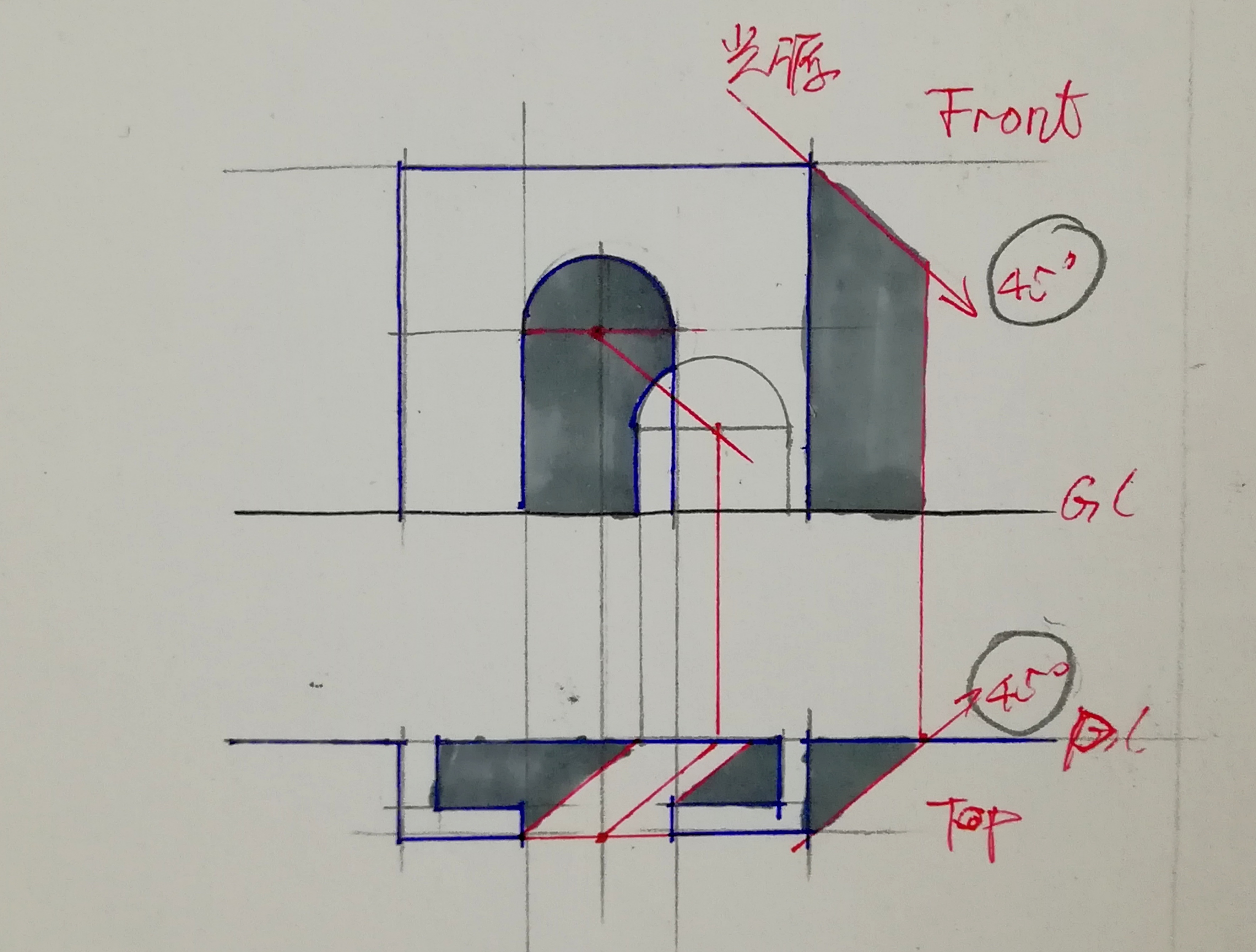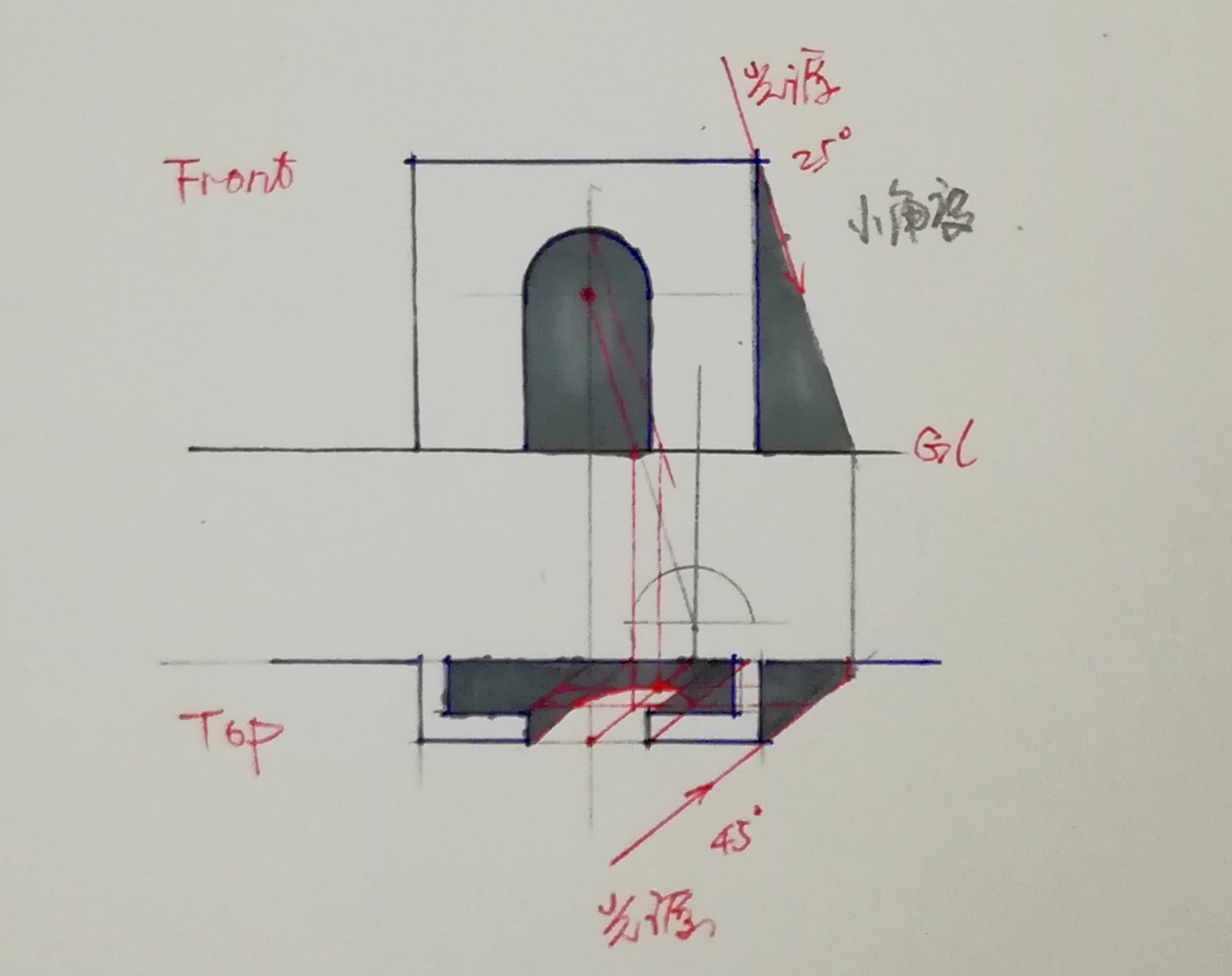 可利用自定义角度的平行光,来制作平面图和立面图的阴影。