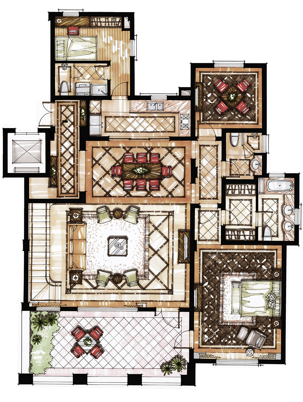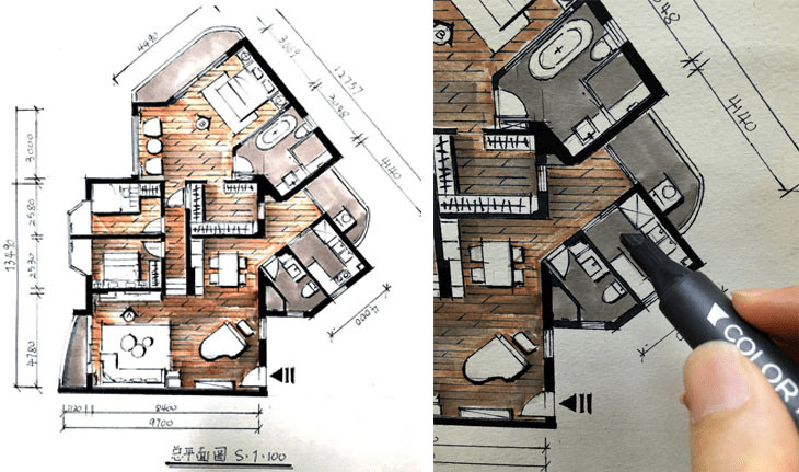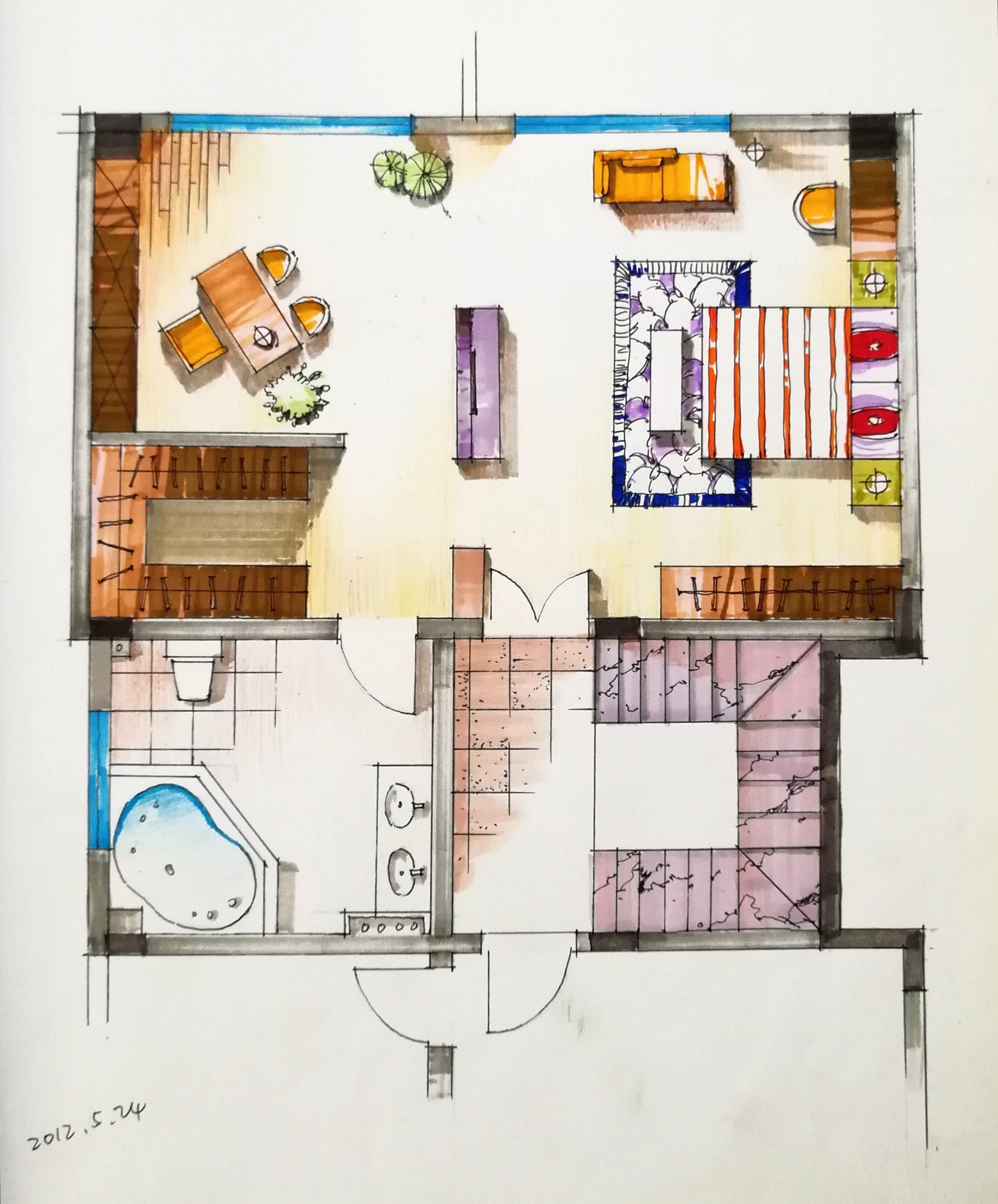 设计方案快题设计范例:建筑平面图的表现(钢笔马克笔手绘)