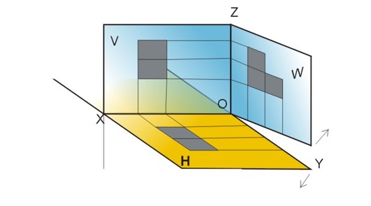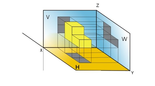 正投影图是以二维方式在平面绘图纸上描述一个物体、空间或一个建筑的多个视图。