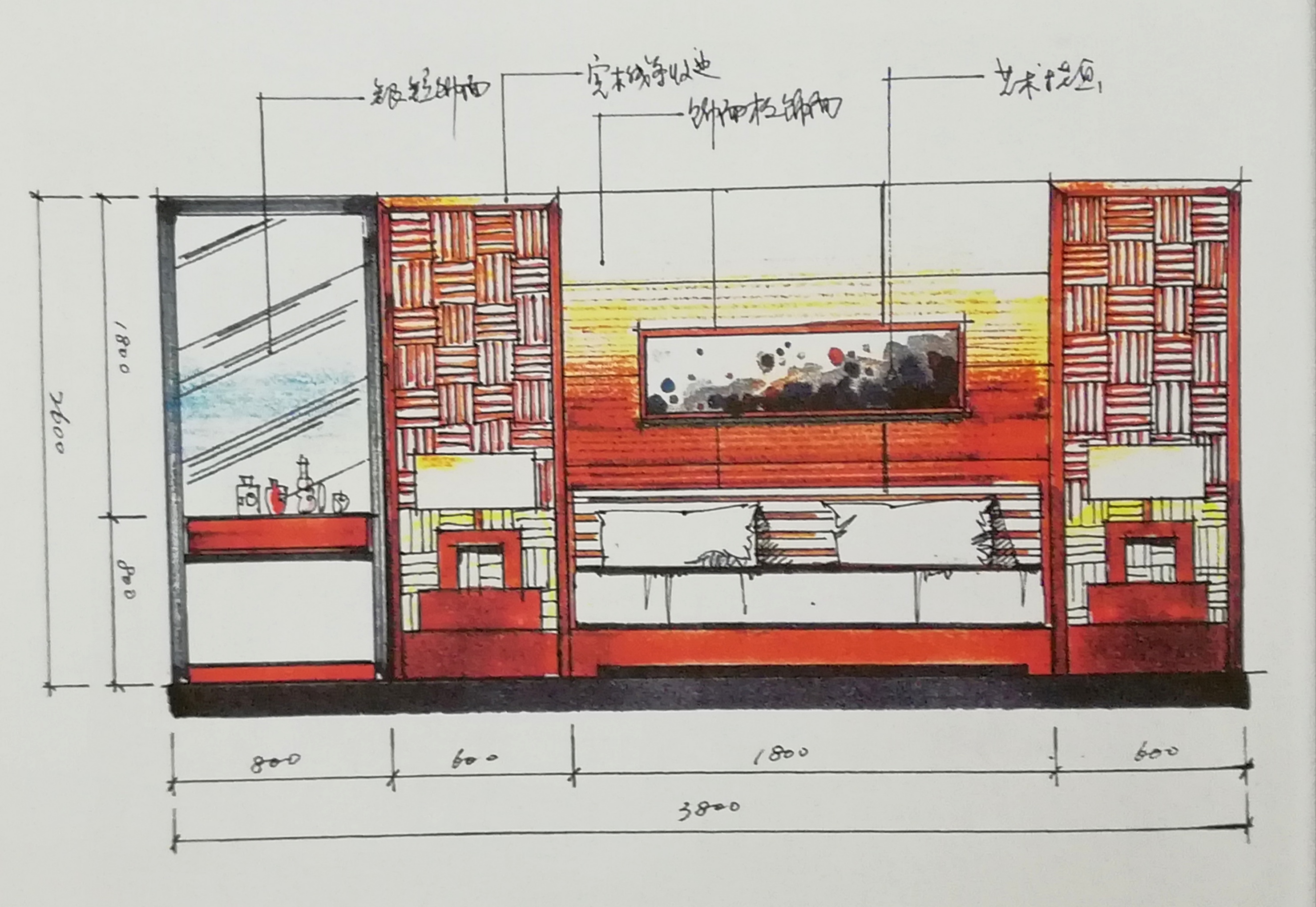 在平面图的基础上进行空间优化,需要处理好室内空间的界面,因为界面是人直接看到,甚至接触到的实体要素,界面的组合可以赋予空间丰富的形态。界面的设计要考虑比例尺度、材质与色彩的运用,仔细推空间细节,才能符合空间文化内涵表达的需要。