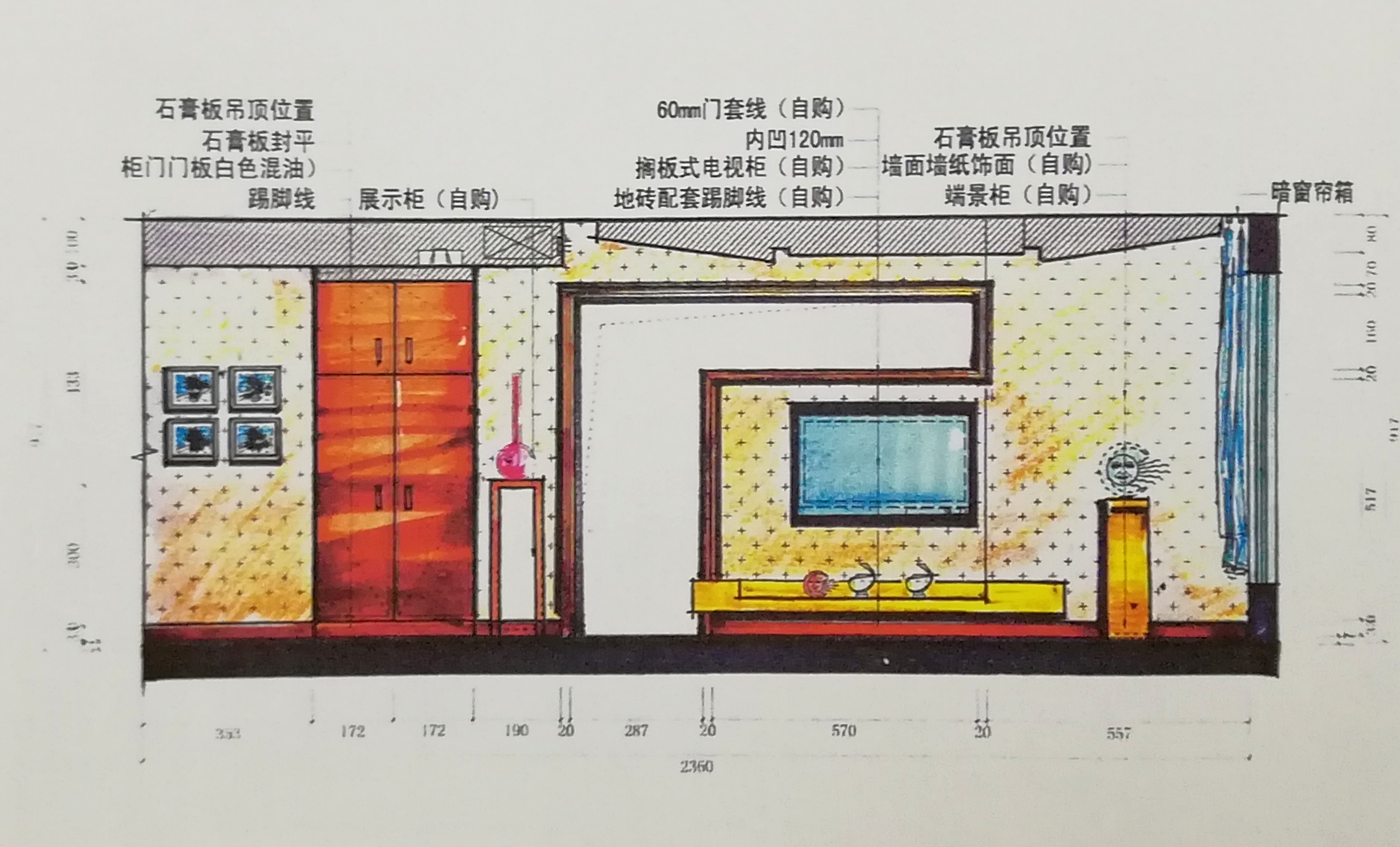 (2)实测你自己家居客厅的平面,制成平面效果图;