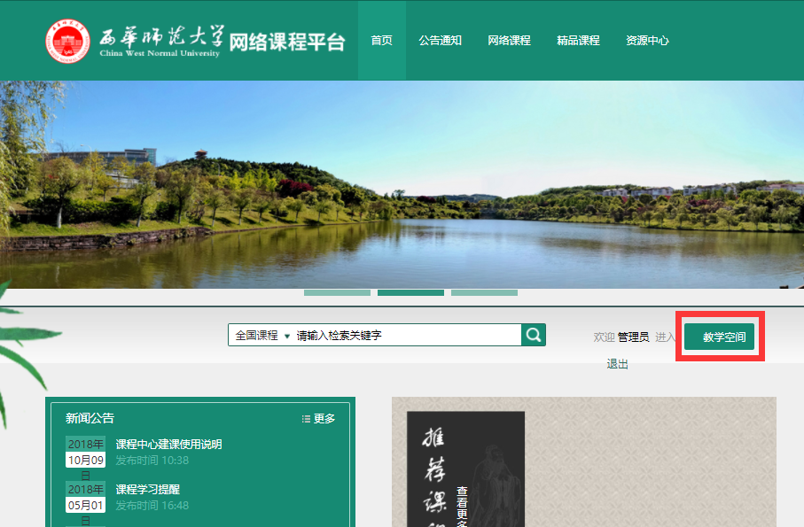 第四步:点击“教学空间”,即可进入您的个人教学空间(如图1、图2所示)。