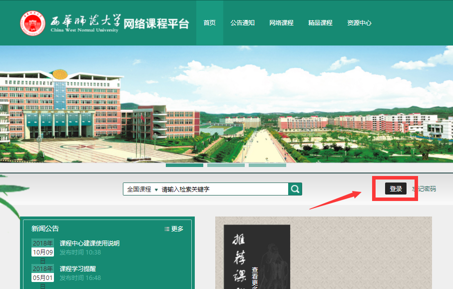 2.打开学校网络教学平台网址(http://cwnu.fanya.chaoxing.com/portal);