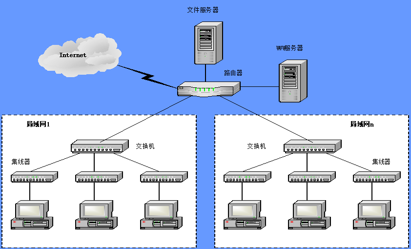 的是广播方式,产生“广播风暴”;路由器将多个局域网的广播通信量相互