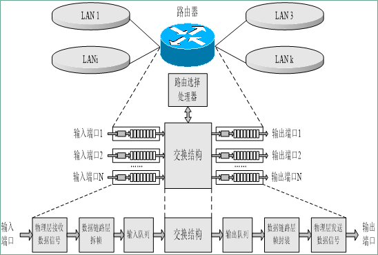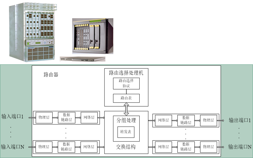 路由器采用表驱动的路由选择算法,路由表存储目的/源地址信息,转发IP分组时查询,确定从那个端口转发出去