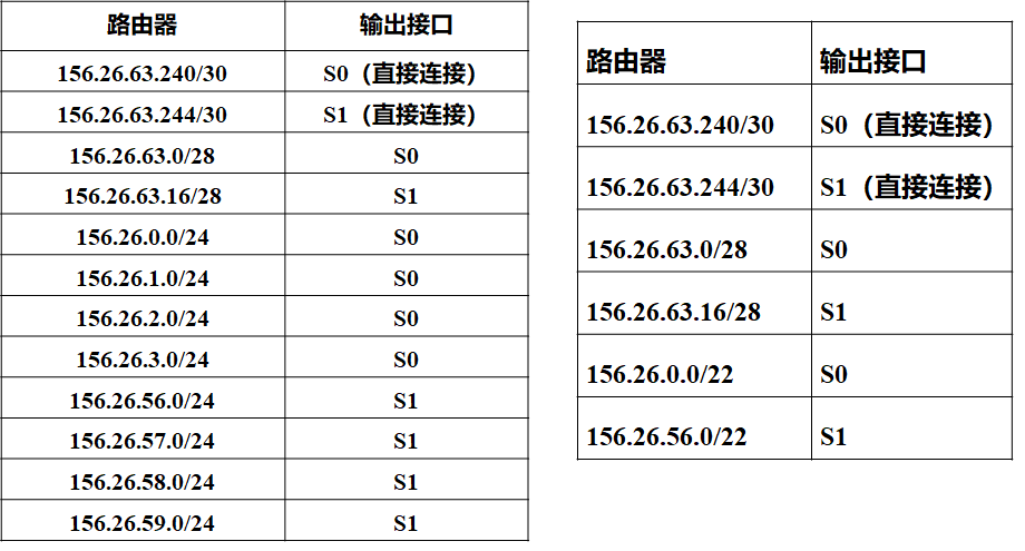 路由器RG的路由表 汇聚后的路由器RG的路由表