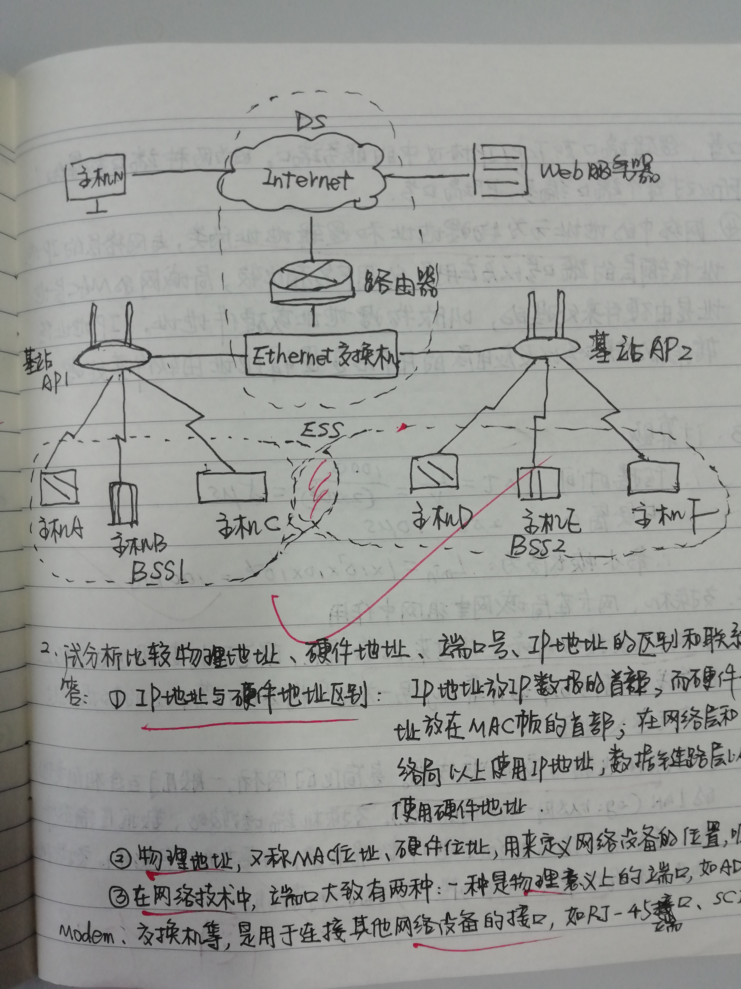 (1).试分析比较物理地址、硬件地址、端口号、IP地址的区别与联系。
