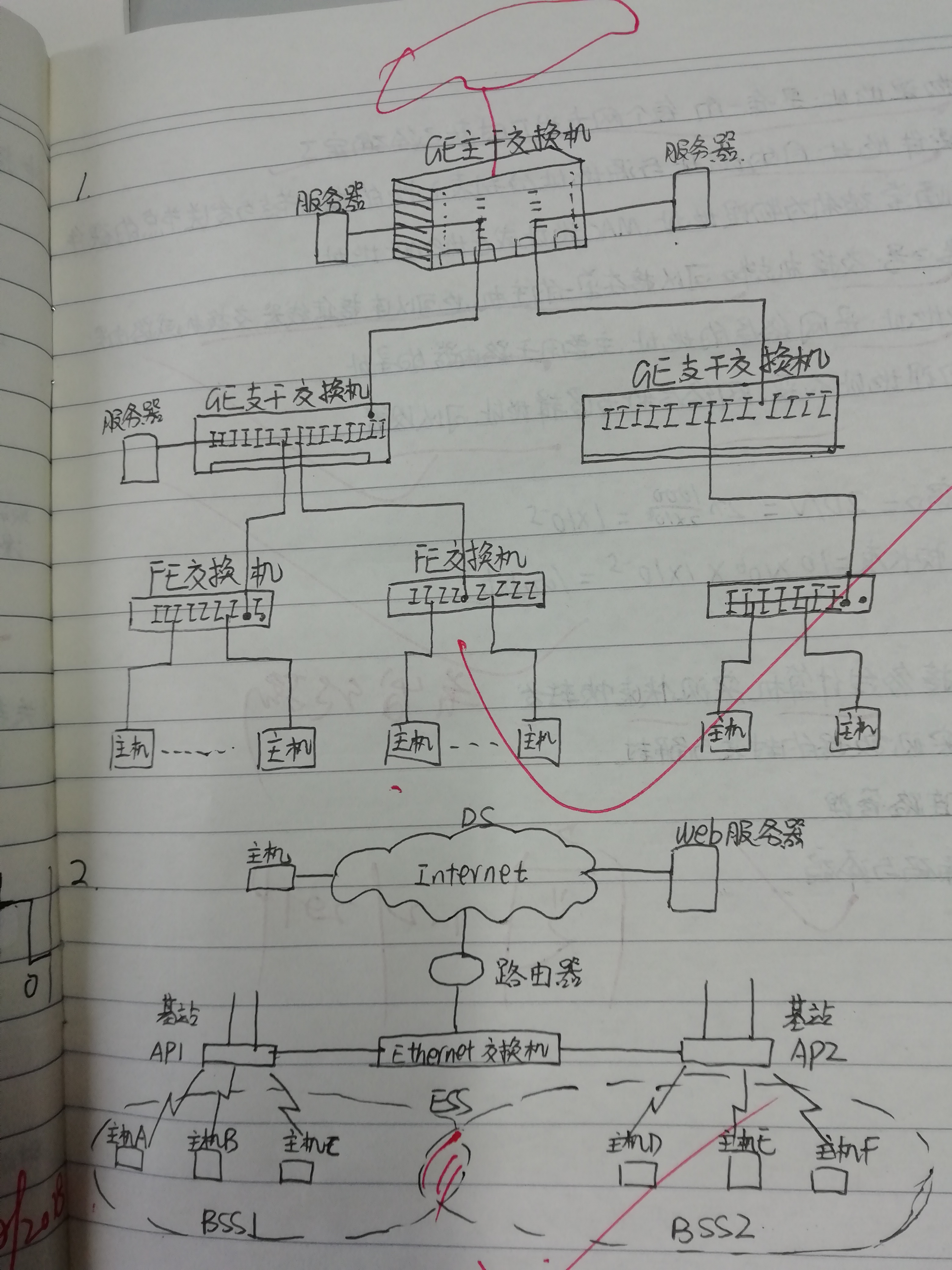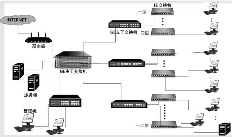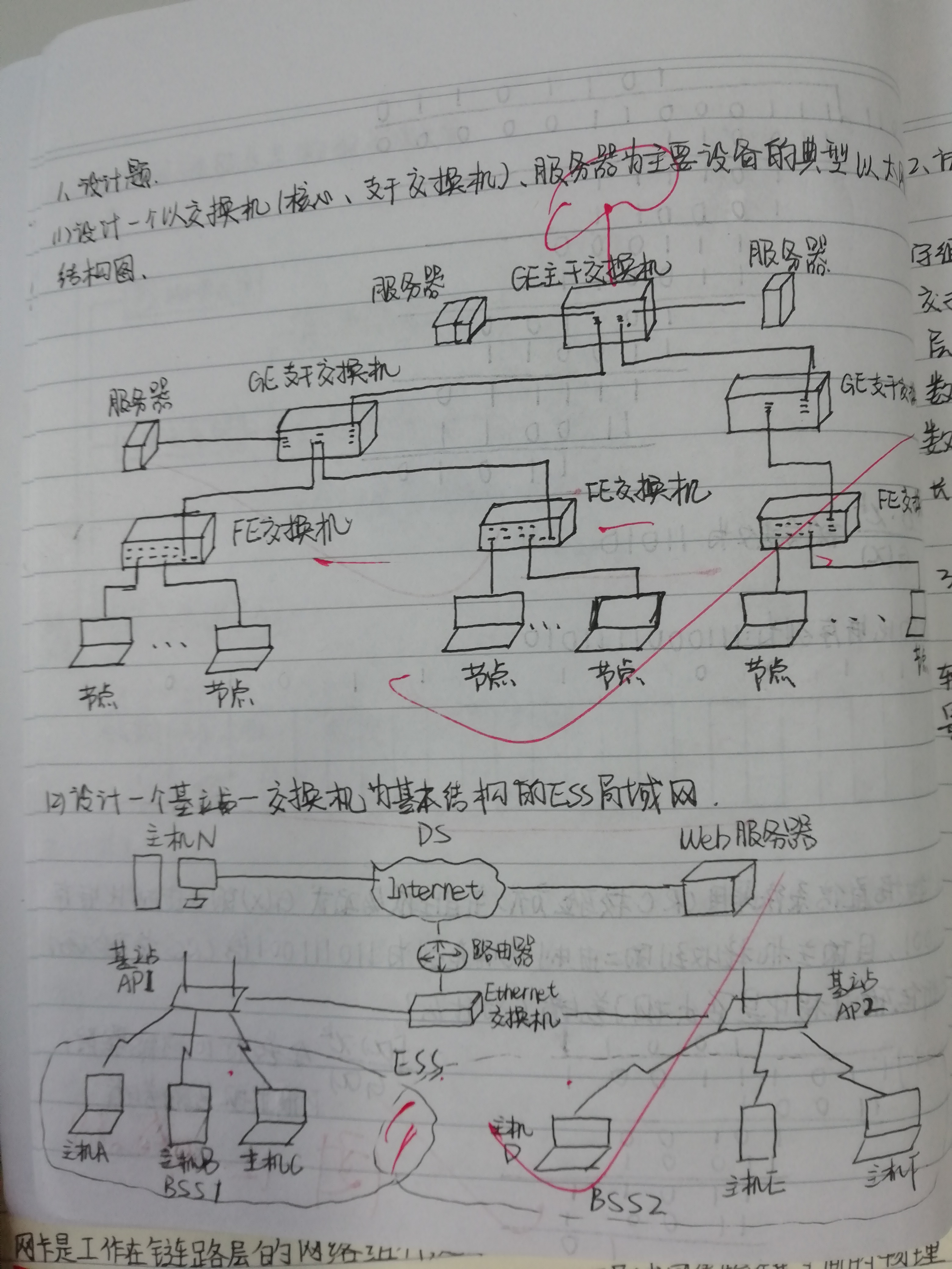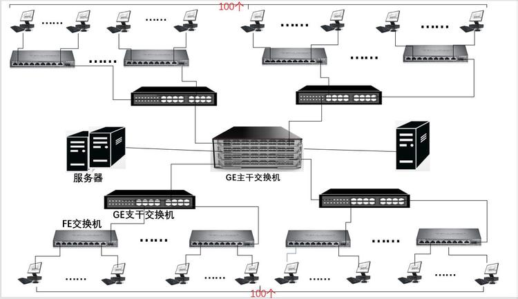 ⑴设计一个以交换机(核心、支干交换机)、服务器为主要设备的典型以太