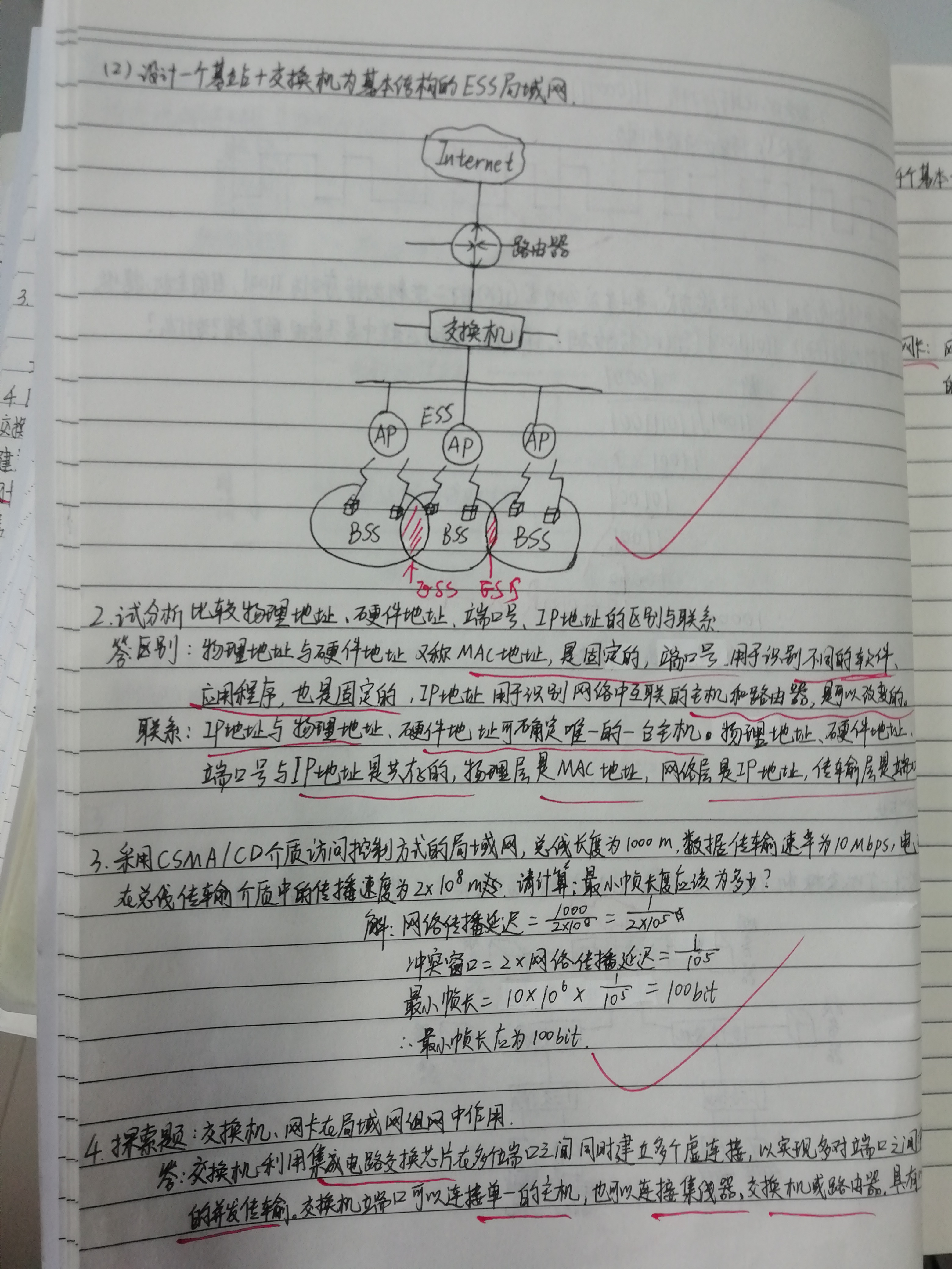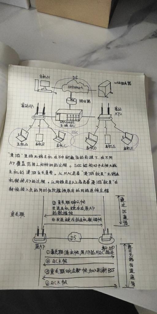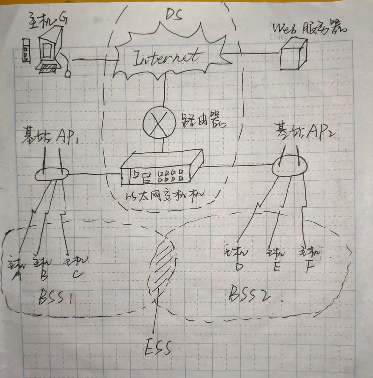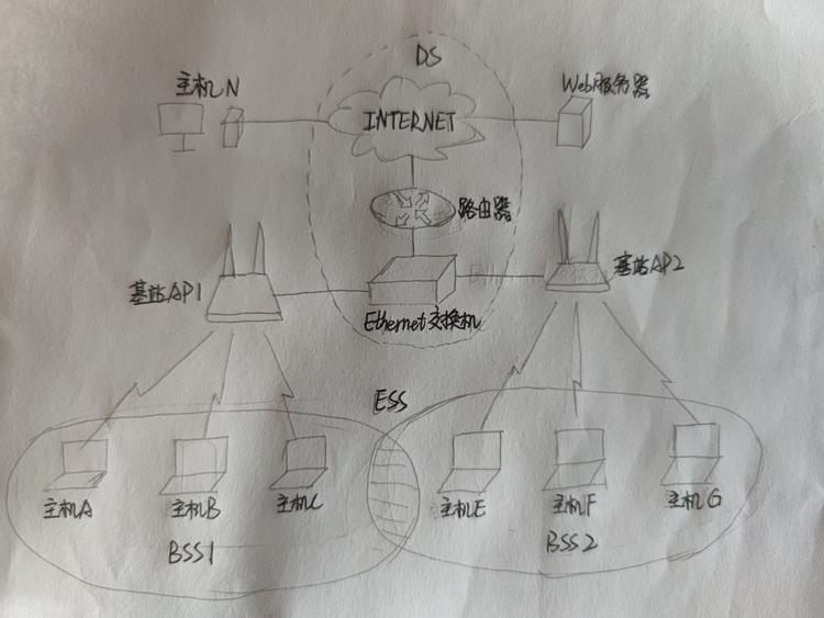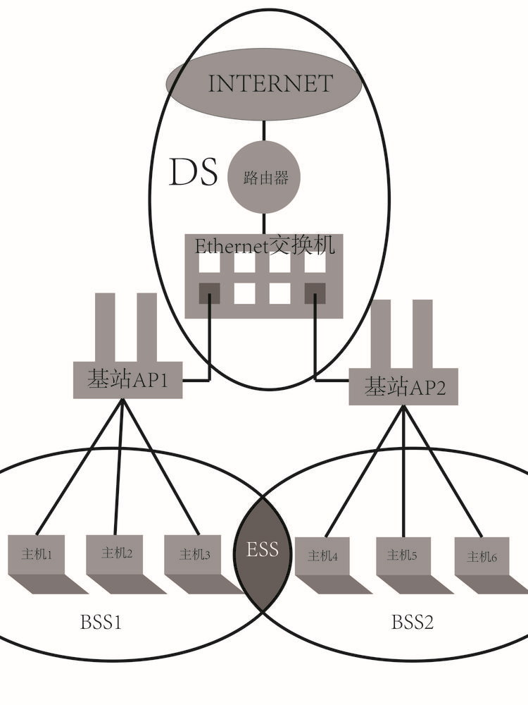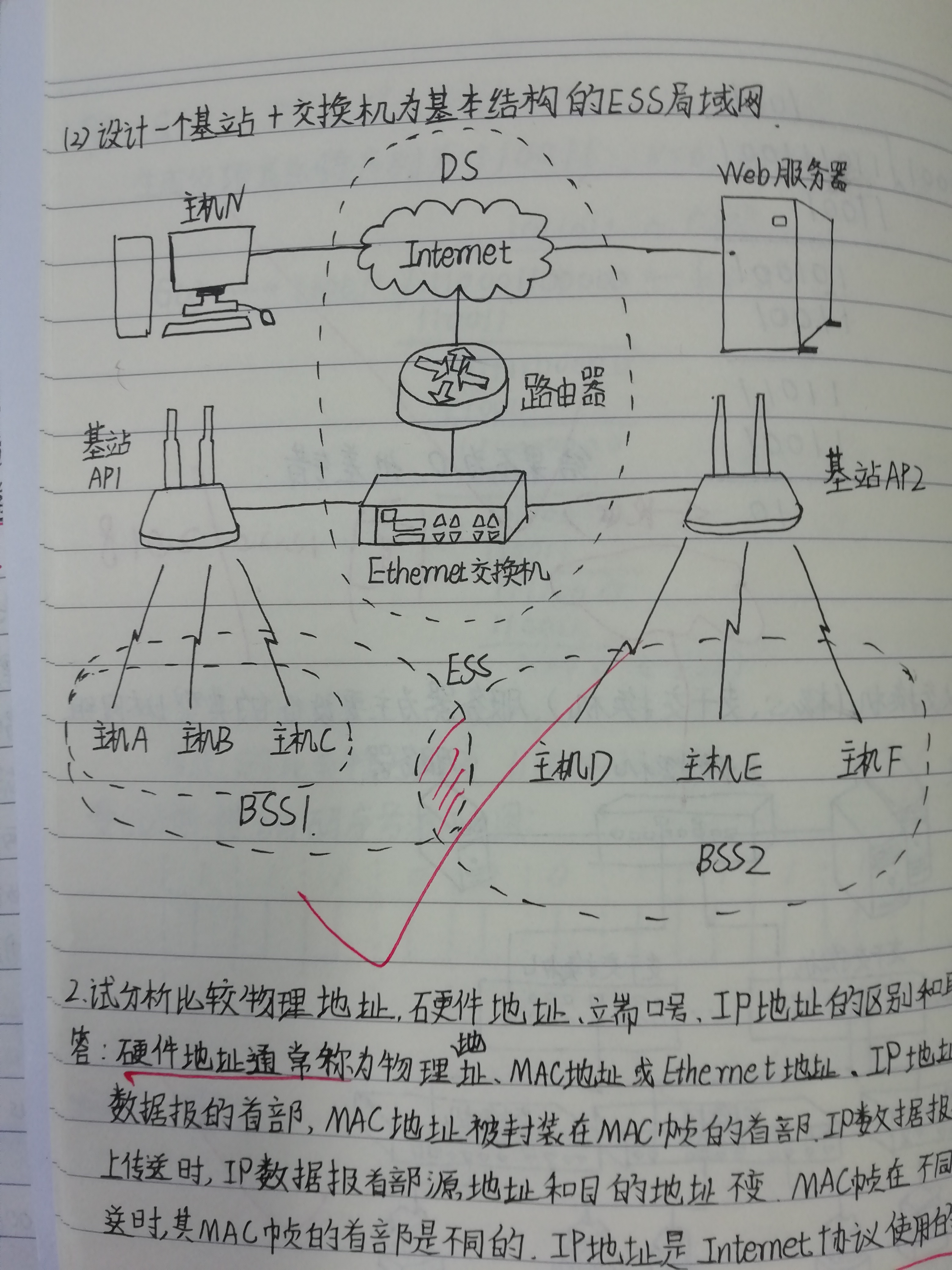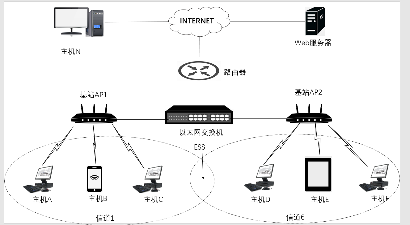 ⑵设计一个基站+交换机为基本结构的ESS局域网