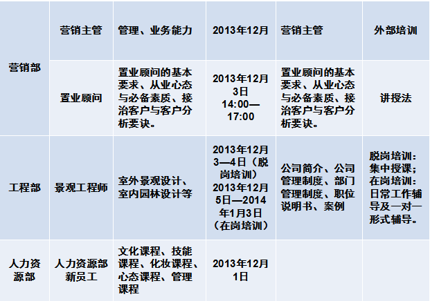 具体任务:①一般人员的上岗培训;②公司下达的培训任务。