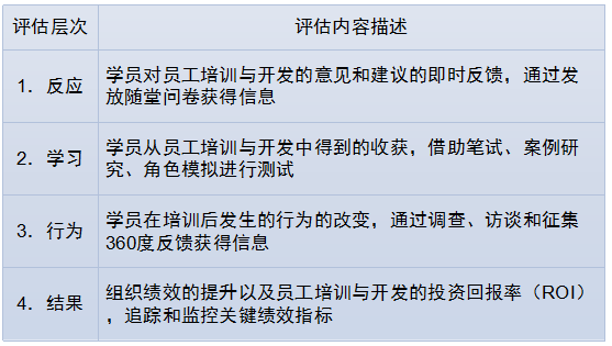 (2)学习层面,即主要考察学员学到的知识和技能。