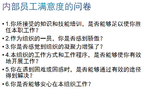 员工的士气和精神风貌、员工的团队意识、组织内部各部门以及员工之间的沟通效率、组织环境的和谐程度、员工的忠诚度等