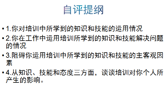 在培训结束后的适宜时间内,根据制定的培训目标和要求对有关的计划指标进行测评,即对培训前后的指标完成情况进行对照比较。