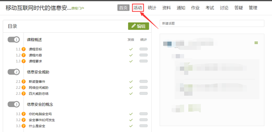1.通过电脑登录学习平台,在平台课程中的“活动”一栏内发布互动任务。