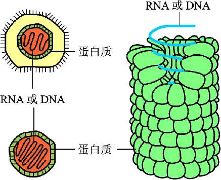 植物病毒的形态:杆状、丝状和球状;