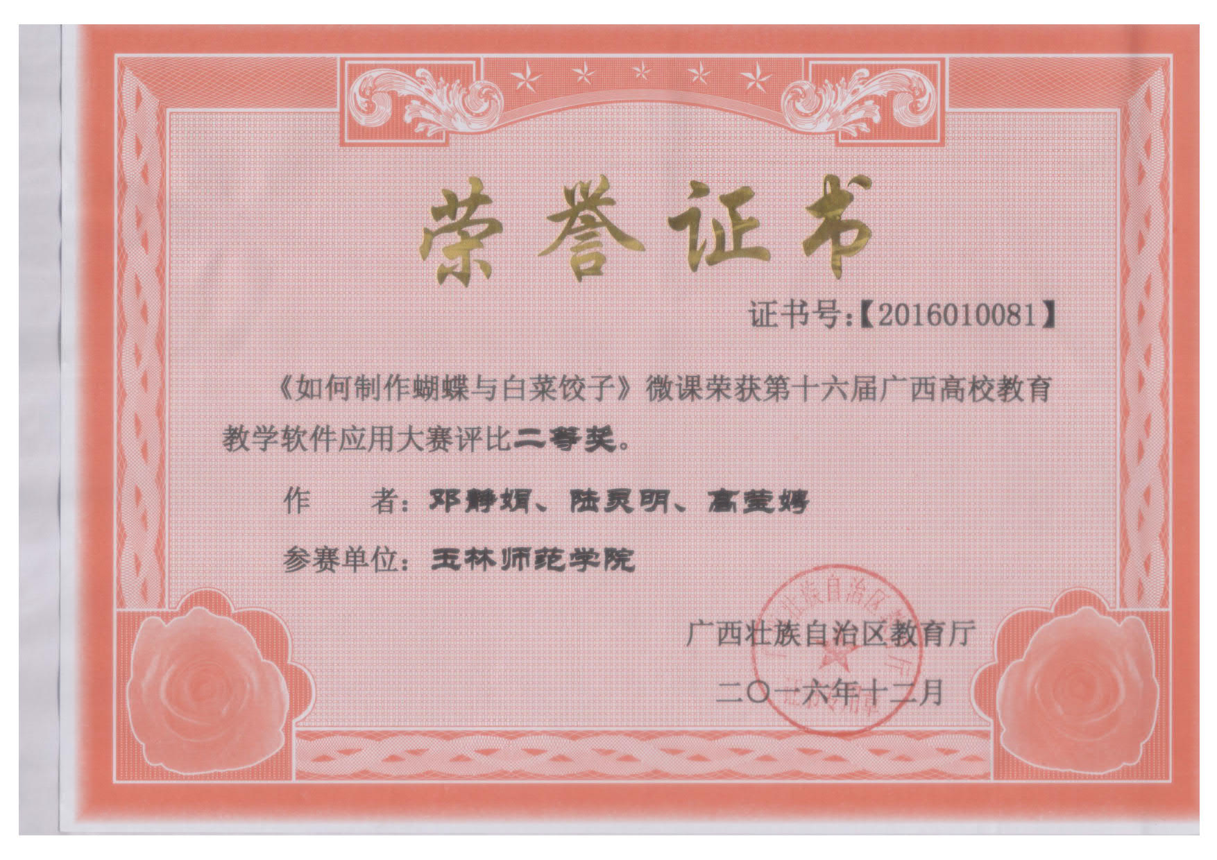 第十六届广西高校教育教学软件应用大赛二等奖: