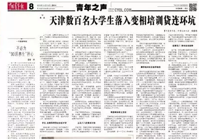 案例:天津百名大学生在求职阶段落入“ 培训贷”陷阱。一些公司向求职者许下高薪承诺,但要求参加合作培训机构组织的培训,并缴纳高昂的培训费用(可以用分期贷款的形式偿还)。培训结束后,有关公司却无法兑现当初许诺的职位,大学生却为偿还贷款陷入了困境。