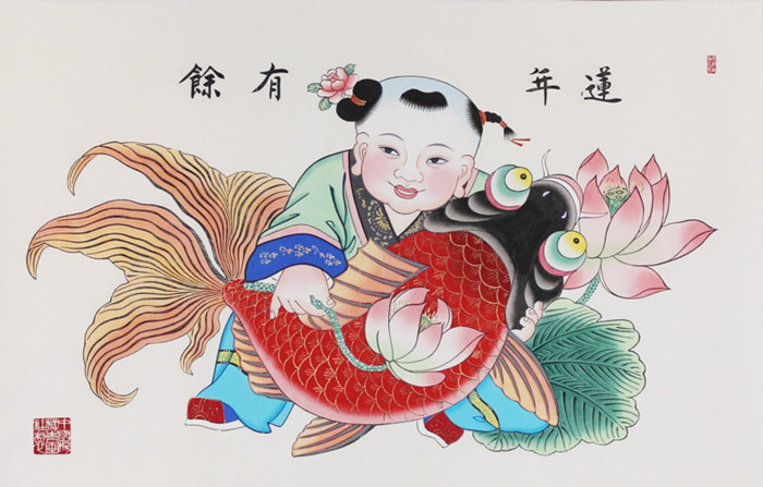 中国民间传统装饰艺术的表达手法是含蓄的, 通常采用谐音、 象征、寓意、 拟人等方法来表达某种情感或意念。 谐音取义, 语义双关, 寓意深刻。 而谐音的关键点便是吉祥之意。 例如, 芙蓉花和桂花组合在一起的画面中, “芙” 与 “夫” 同音, “蓉” 同 “荣” 同音, “桂” 与 “贵” 同音,因此寓意为夫荣富贵; 再如 “鱼” 与 “余” 谐音, 于是以 《连年有余》为名的木版年画便深受广大劳动人民的欢迎。 寿石、桃子寓意长寿, 牡丹在中国文化中寓意富贵, 因此有寿石、 牡丹和桃花组合的装饰图案则被喻为长命富贵之意。