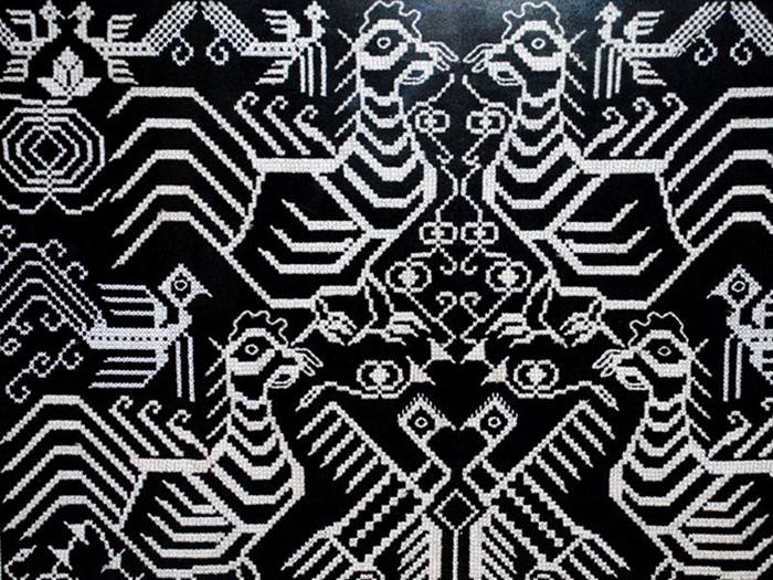 抽象法是把自然的事物进行提纯概括, 运用纯粹几何形态进行组合再构的手法。 例如, 我国瑶族织锦和蜡染纹样中的谷仓花便是用几何直线表示谷仓结构的, 中间还有谷籽形。 而广西南丹的瑶族刺绣纹样则多以似正方形的红线组成, 好像太阳放射光芒, 寓意追求光明与自由。