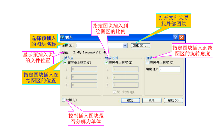 图块是用一个图块名命名的一组图形实体的总称。AutoCAD总是把图块作为一个单独的、完整的对象来操作。用户可以根据实际需要将图块按给定的缩放系统和旋转角度插入到指定的任一位置,也可以对整个图块进行复制、移动、旋转、比例缩放、镜像、删除和阵列等操作。