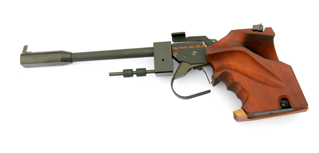 (七)按枪械的工作的方式又可分为非自动枪械、半自动枪械、全自动枪械。非自动枪械多数是高精度狙击枪、比赛专用的运动型手枪(图1-1-10),运动型长枪。半自动枪械多以手枪为主,也有部分的霰弹枪和狙击枪。全自动的枪械常见的有冲锋枪,机关枪等。