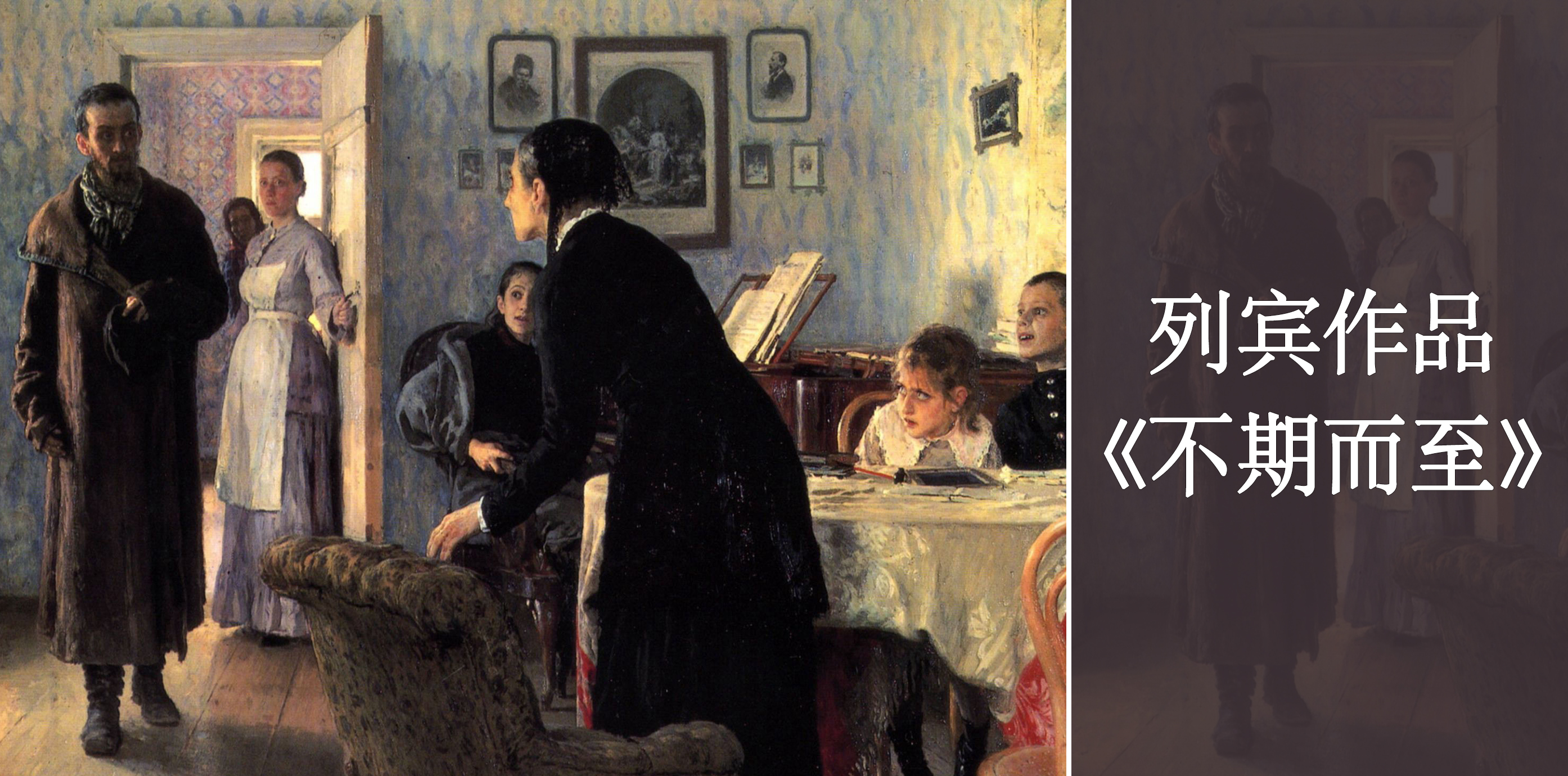 ②俄国19世纪巡回览画派画家列宾作品《不期而至》(《突然归来》)。