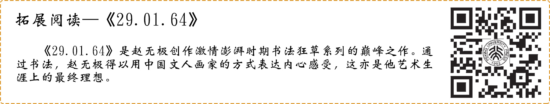赵无极的画很多都没有标题,我在北大讲课,我把这幅画放给学生看,问它像什么?有的学生告诉我像大海,有的学生说像蓝天,还有的学生说像宇宙。他的画虽然是幅油画,但是把国画的意境融进去了,可以像大海,可以像天空,也可以像宇宙。