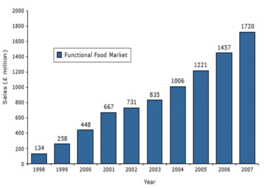 ![]() | 2013年功能性食品全球市场估计为432.7亿美元 |