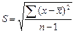 由于样本方差带有原观测单位的平方单位,在仅表示一个资料中各观测值的变异程度而不作其它分析时,常需要与平均数配合使用,这时应将平方单位还原,即应求出样本方差的平方根。统计学上把样本方差S2的平方根叫做样本标准差,记为S,即: