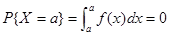 即连续型随机变量取某一实数值的概率为零。