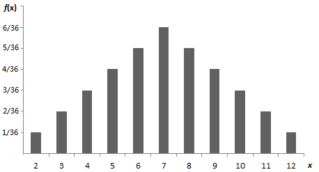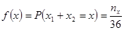 为2次投掷点数之和为x的组合数。该概率函数的概率分布列为