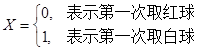 例3.9 1个口袋中有大小形状相同的2红、4白6个球,从袋中不放回地取两次球。设随机变量