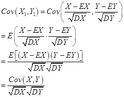 协方差作为描述X和Y相关程度的量,在同一物理量纲之下有一定的作用,但同样的两个量采用不同的量纲使它们的协方差在数值上表现出很大的差异。为此引入如下概念:标准化随机变量的协方差称为相关系数,记作