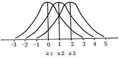 图3-3 σ相同而μ不同的三个正态分布